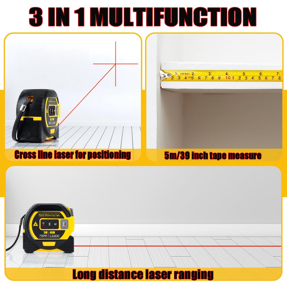 Measure smarter and faster with the Tilswall 3-in-1 Digital Laser Tape Measure.