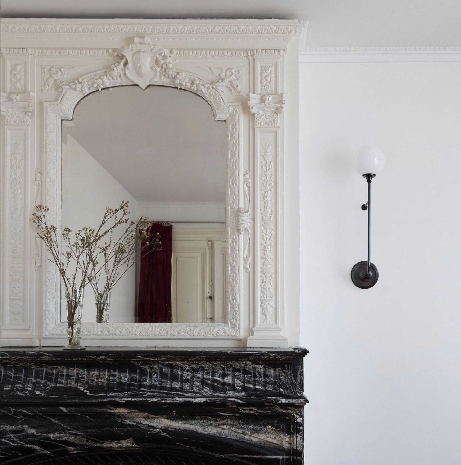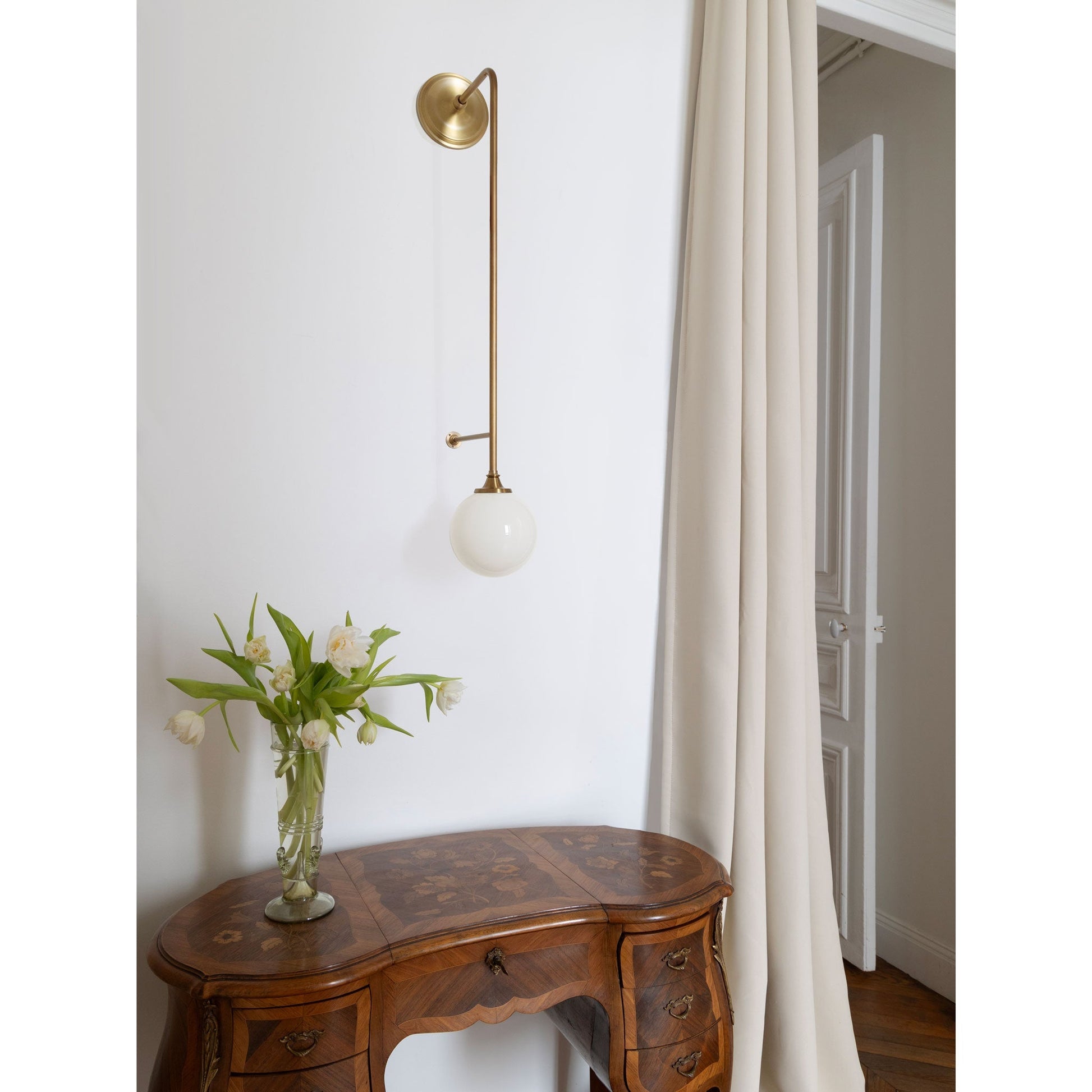 The Beverly offers a beautiful French aesthetic with statement scale. The handblown 6" opal globe can be oriented up or down.