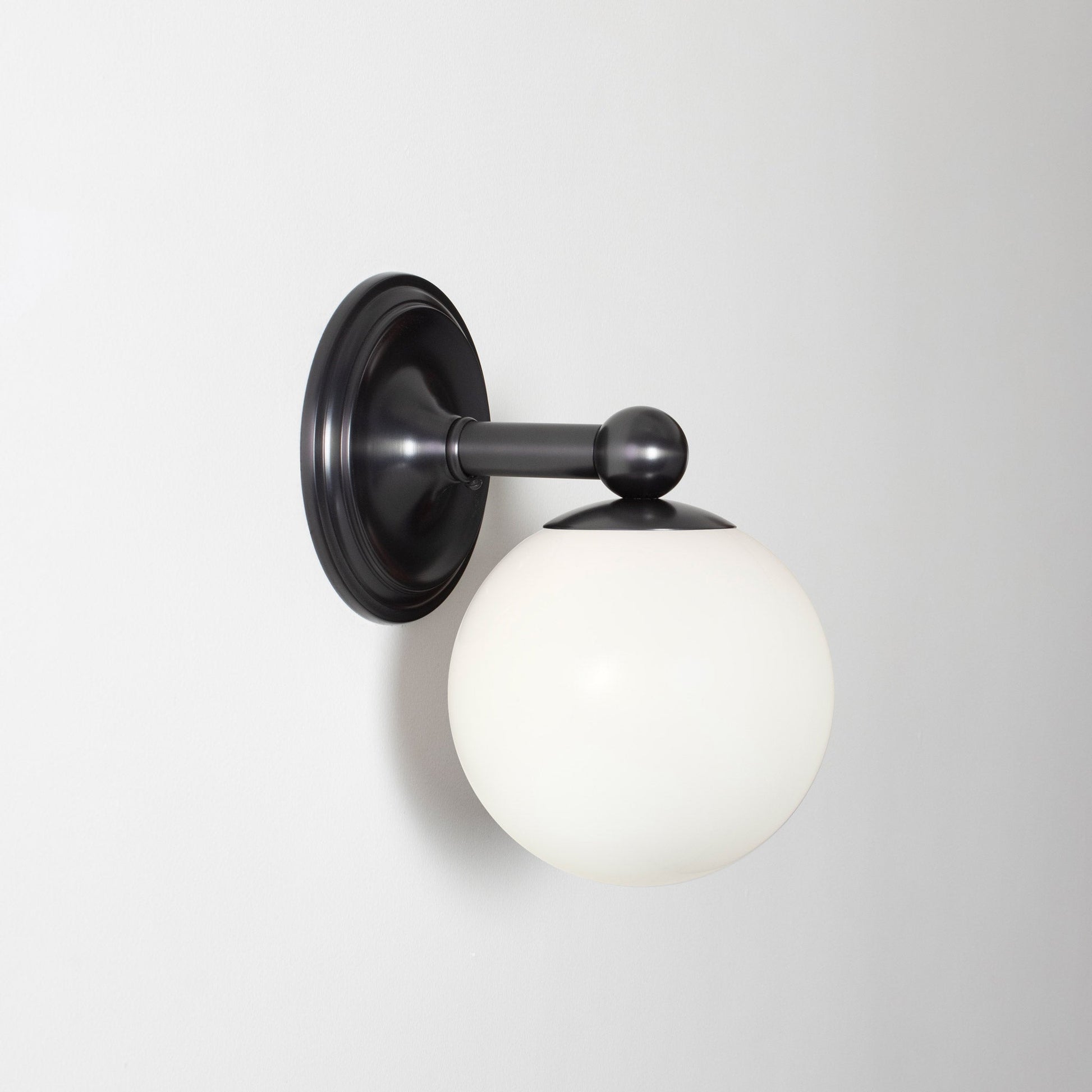 A refined, versatile sconce perfect for sophisticated homes, brownstones, and hotels. The Eleanor Sconce features a richly detailed brass backplate, artisan finishes, and a beautiful six inch diameter opal glass globe.